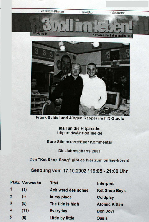 Drei Wochen hintereinander Platz 1 der hr3-Hitparade,