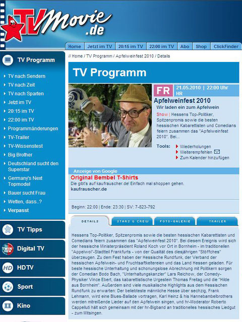 mit zwei Auftritten bei der Sendung des hr-Fernsehens